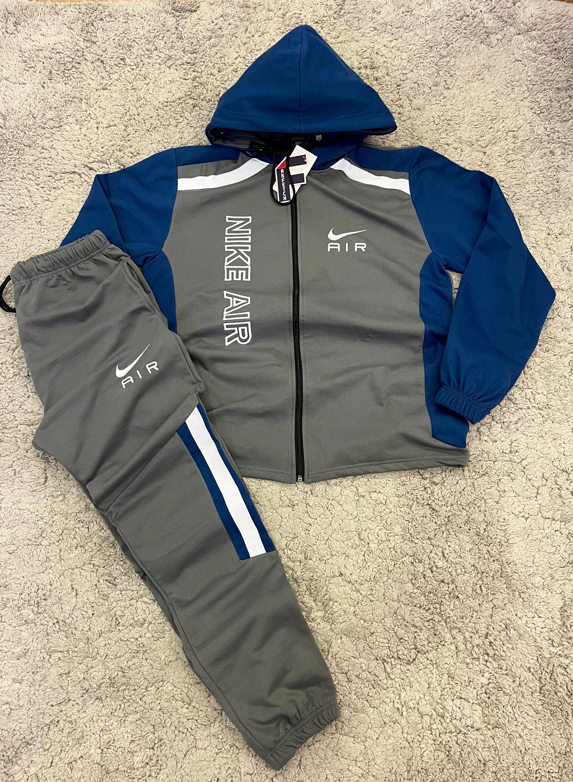 Confeccionado en tejido suave y resistente, incluye sudadera con capucha o cremallera (según modelo) y pantalón jogger con cintura ajustable. Los detalles icónicos de la línea Nike Air resaltan en logotipos bordados o estampados, aportando un toque distintivo y auténtico.